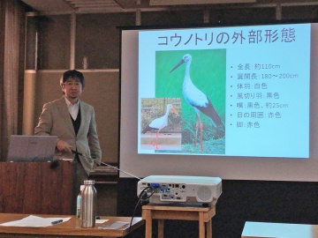 続いて「豊岡市におけるコウノトリをシンボルにした生物多様性の保全」と題し、兵庫県立コウノトリの郷公園の佐川志朗氏にお話し頂きました。