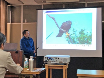 まず、「サシバをシンボルにした生物多様性の保全 ~サシバのすめる森づくり~」と題し、豊田市自然観察の森の川島賢治氏にお話し頂きました。
