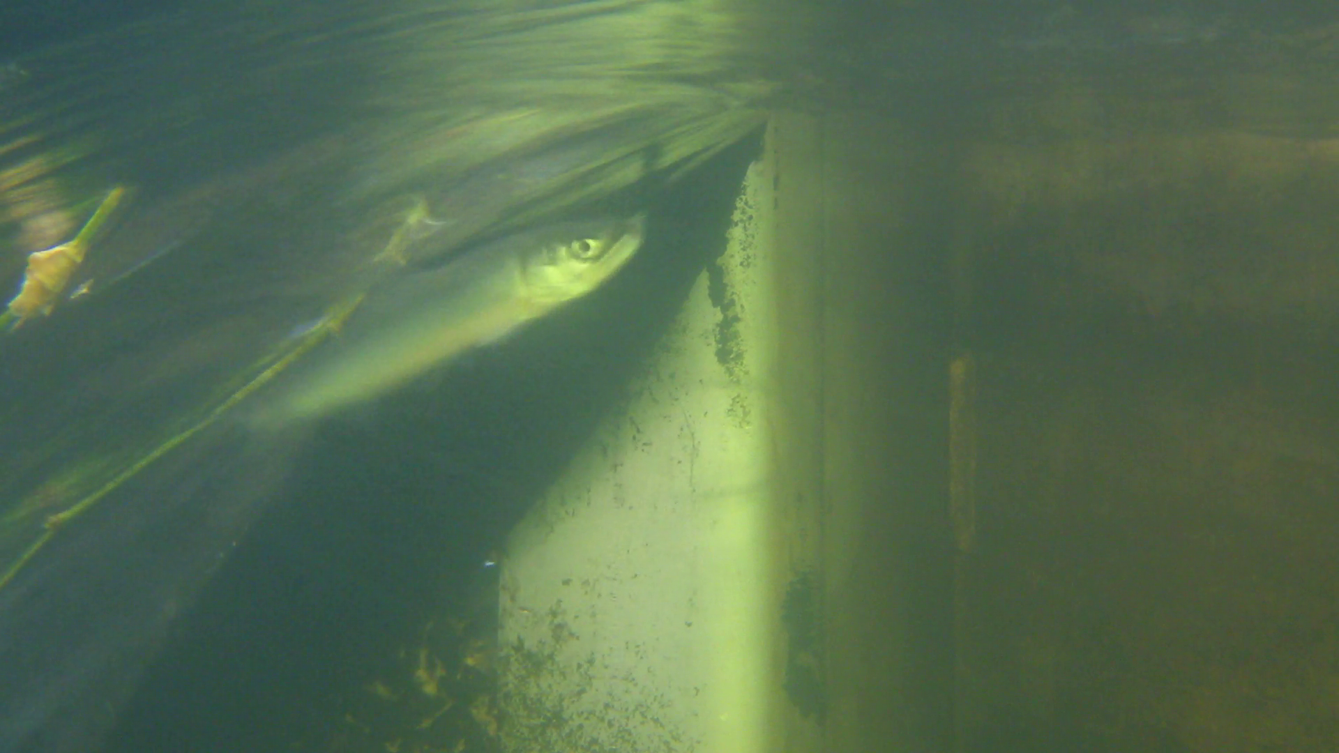 桜の花びらが舞う中、今年もアユの遡上が始まりました。この日も昼前には大きなアユの群れが明治用水頭首工の右岸魚道(西側の魚道)を遡上していました。気温が高めで推移してきたせいか、稚アユの遡上も昨年より早めに始まった印象です。今後4月下旬から5月上旬にかけて遡上はピークを迎えます。