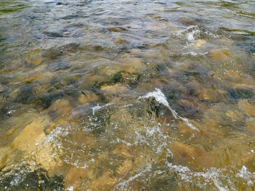 2017年に礫を敷いた実験区では、2018年までほとんどコケ植物が見られませんでしたが、2019年春頃から元の川底に生えていたコケ植物が侵入し、敷いた礫の上にも生育し始めました。この日の調査では水面からも黒っぽく見える礫があちらこちらに見られ、コケ植物が一段と拡がっていることが確認されました。