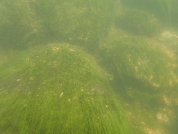 コケ植物や糸状緑藻が石を覆っています