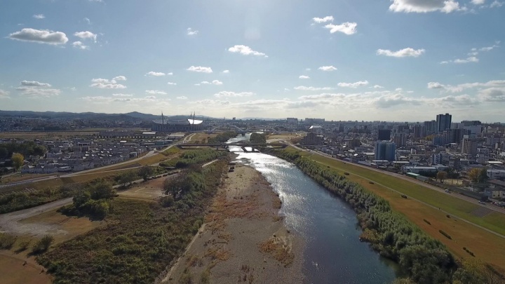 矢作川漁協の方々のアユ釣り船に乗せていただき船上からオオカナダモを目視して分布状況を把握していたのですが、船頭さんの高齢化が進み、2018年からはドローンを飛ばして、上空から撮影した動画を見ながら分布を確認する方法も併用しています。