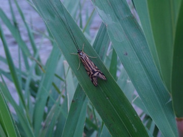 広瀬ではアユの友釣りが解禁になっていましたが、釣人の姿はみられません。しかし、瀬の水しぶきの音がする中、岸辺のヨシ原では、無数のオオシマトビケラが羽を休めていました(写真下)。侵入者である私に驚いたのか、顔や体にバシバシと体当たりしてきます。水面では、羽化したての水生昆虫を求めてツバメたちが低空飛翔し、あっという間に上空に舞い上がっていきます。ツバメのアクロバット飛行は一見の価値があります。初夏の矢作川は生物たちで賑わっていました。(内田朝子)