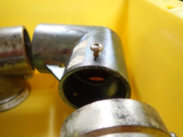 行ってみると、内田さんと濱野さんが何やら工作中で、よく見ると金属の繋ぎ手にネジを入れ込んでいます。実はこれ、川に透明水路を作って川底の付着藻類の光合成量を調べる研究の“下ごしらえ”で、透明水路のフレームの部品の準備風景の一つでした。