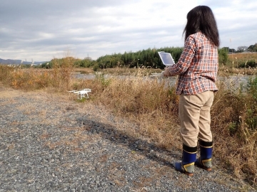 このモニタリング調査は2011年以降、年に1回、出水のほとんどない冬季に実施しています。調査を始めた頃は、アユの釣り舟で川下りをしながら繁茂するオオカナダモを把握していました。しかし、近年、高齢化に伴い、調査の相棒となってくださる船頭さんが激減しました。ドローンを利用すると、上空から水中の様子を短時間で撮影でき、とても便利ですが、釣り舟に驚いて飛び立つ水鳥や川の主ヅラをしたコイに出会うという楽しみが減りました。