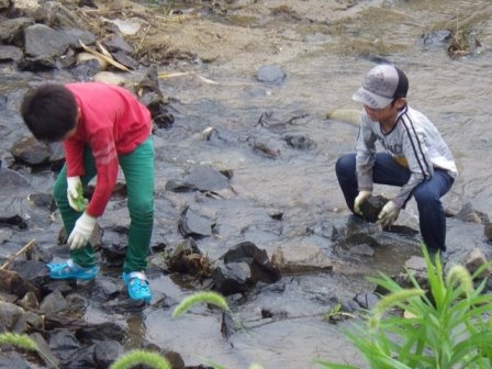 川づくり作業後の岩本川