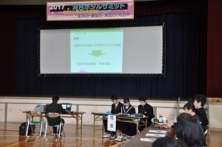 ホタルサミットでは河合中学校に加え、3つの小学校の児童による環境保護活動の発表がありました。ゲンジボタルの保護活動に端を発し、生息場となる川岸の竹林伐採や水源林となる山の手入れなど活動がどんどん拡がっている様子が紹介されました。