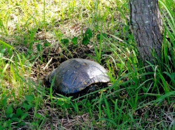 野外に生息するアカミミガメには何の罪もありません。しかし、在来の生態系を守るために、豊田市ではアカミミガメの防除を行っています(詳細はこちらをご覧ください)。子ガメは小さく可愛らしいですが、成長すると20cm以上になり寿命も30年前後と長生きです。防除しなければならないかわいそうなアカミミガメたちを増やさないために、飼育する場合は最後まで責任を持って飼い続けるようにしましょう。(浜崎健児)