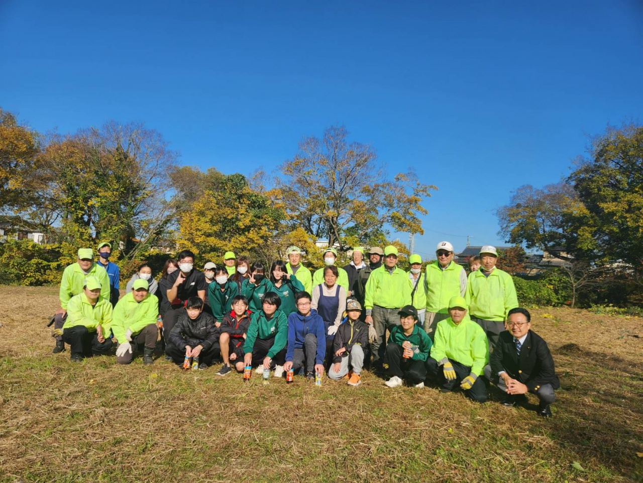 2025年11月30日、矢作川の中流部の川辺を整備する「下越戸水辺愛護会」(会員28名)の活動に、地元の中学生団体「ジュニアクラブ」のメンバー12名と保護者5名が参加しました。その様子を、後日、会長の川崎学さんに伺いました。