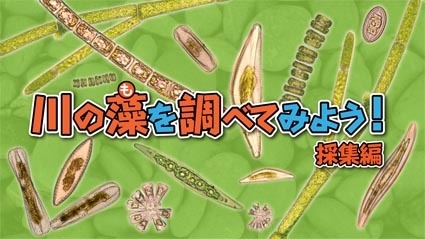 川底の石についたヌルヌルには多くの「藻」が生育しています。顕微鏡などを使ってヌルヌルを拡大すると、いろんな形をした藻を見つけることができます。藻は小さすぎて魚や水生昆虫と比べると地味なイメージですが、川の生態系では魚など水生動物の餌となる、とても重要な役割をしています。