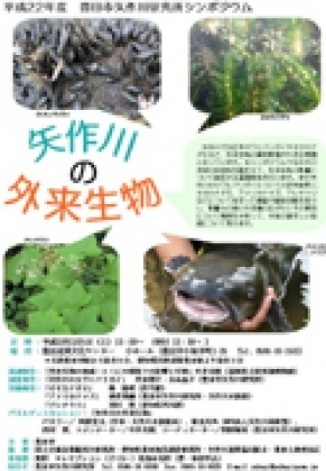 矢作川では近年カワヒバリガイやオオカナダモなど、外来生物の異常繁殖が大きな問題となっています。繁殖力の強い外来生物の存在は、今年度のCOP10を機に広く認識されるようになった生物多様性に対しても大きな脅威です。本シンポジウムでは矢作川流域の地域性を踏まえて、外来生物の影響について総括する基調報告を行います。また矢作川のカワヒバリガイについての研究結果と、オオカナダモ、アメリカナマズ、アレチウリなどについて始まった調査や駆除活動を紹介し、影響力の強い外来種の広がりとその要因について情報を共有して、今後の望ましい取組について考えます。
