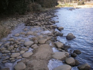 今日は矢作川の中流へ付着藻類の調査に出かけました。河原のたまりは一面、きれいな氷の世界。童心に戻り、調査をするより先に胴長の足で氷り割りを楽しみました。(内田)
